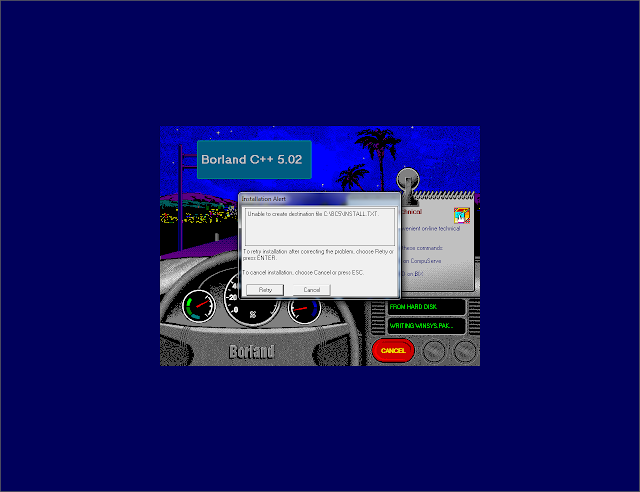 - Setelah dihapus, klik installer Borland tadi dan klik retry,